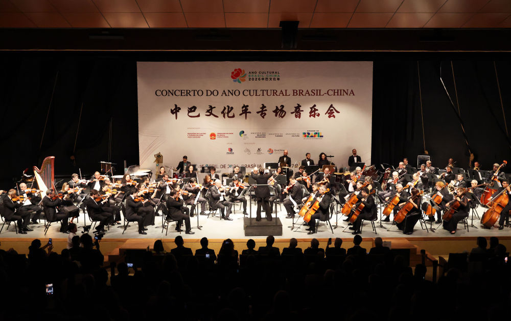 4月7日晚,“中巴文化年”专场音乐会在巴西首都巴西利亚举行,中国交响乐团和巴西克劳迪奥·桑托罗国家剧院交响乐团同台演绎两国经典名曲。本次音乐会是2026“中巴文化年”重要活动之一。